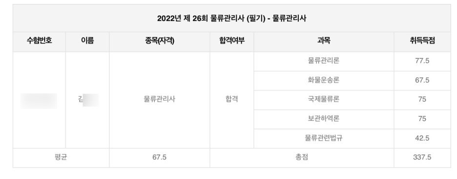 제 26회 물류관리사 시험 합격 (2022)